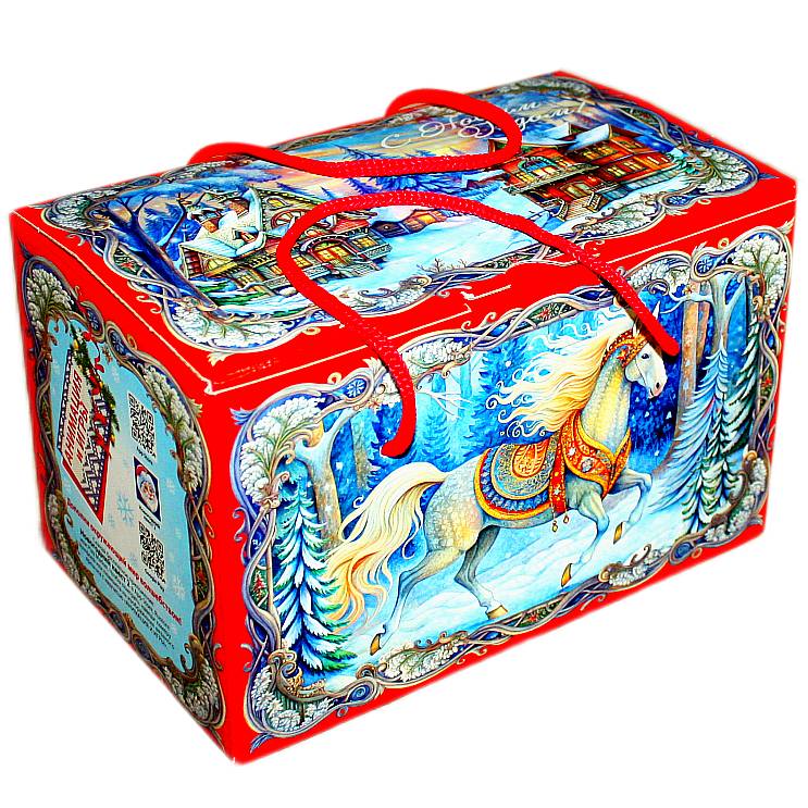 Детский новогодний подарок в картонной упаковке весом 1200 грамм