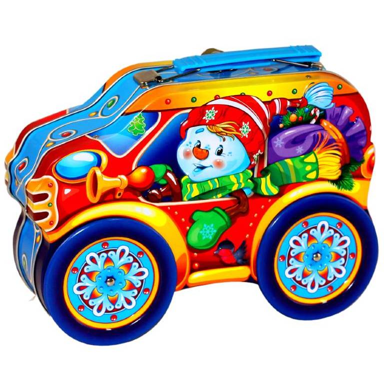 Детский новогодний подарок в жестяной упаковке весом 340 грамм