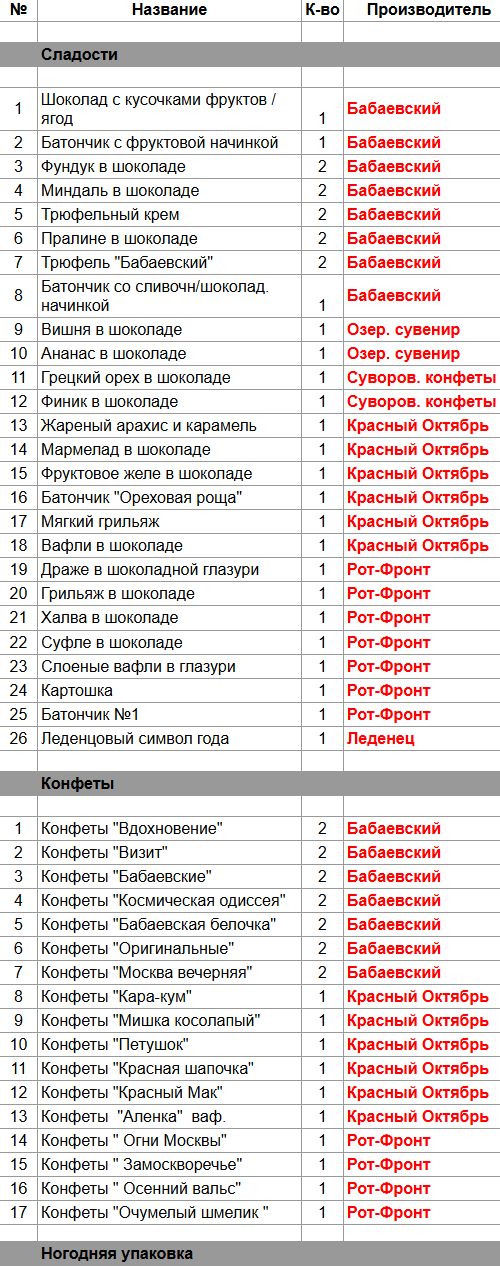 1. Проверить, можно ли внести изменения в состав подарка. Если нет, то скорее всего наборы были собраны еще летом из конфет, произведенных еще раньше